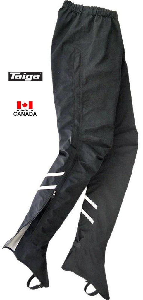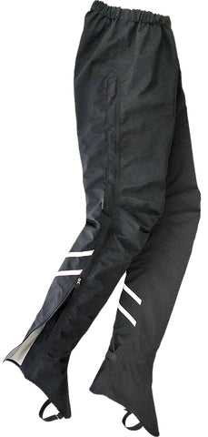 Resembling a croc’s mouth, ingenious shoe-covers on these pants shield your feet from rain & road splash. Covers can fold away as shown. Toe basket holds covers securely in place. All other features are identical to the ‘Velo Pants Reg.’.