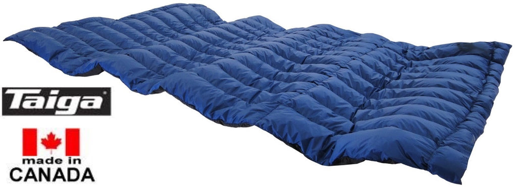 A super-light and compactible down blanket for Camp, Travel, Cottage or Home.